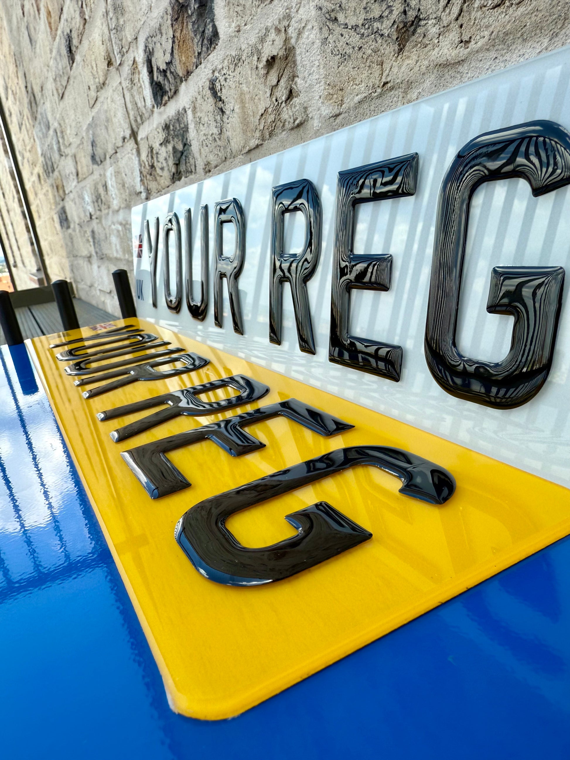 All number plates are made to meet UK road-legal standards when ordered with the correct legal spacing, font, and mandatory markings. It is the customer’s responsibility to ensure the details provided are accurate and compliant with DVLA regulations.