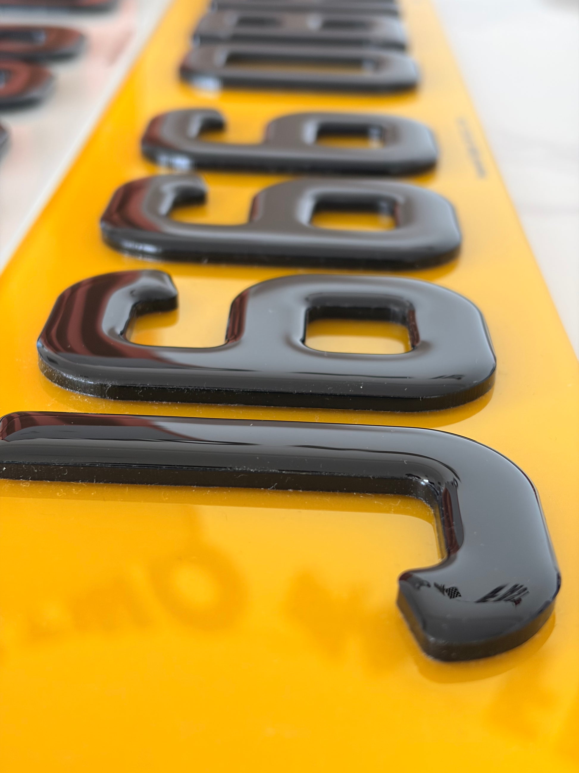 Plates purchased for show use (e.g., custom fonts, coloured tints, altered spacing) are not road legal and must only be used for off-road or display purposes. We accept no liability for fines, penalties, or issues arising from the misuse of show plates on public roads.